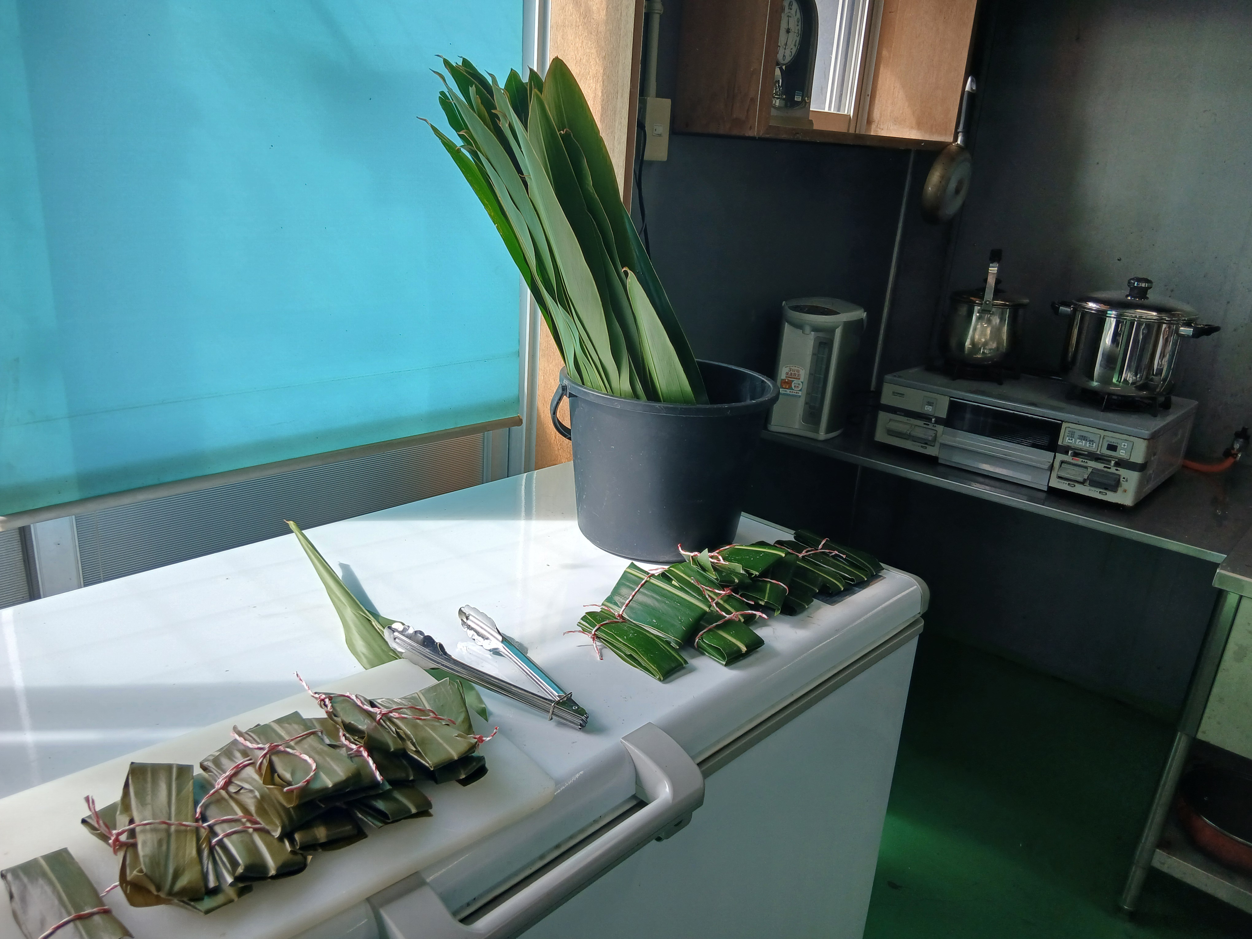 Tさんがムーチーを手作りしてくれました!!ご家族に持ち帰れるように、たくさん作ってくれましたーー!蒸している時の、月桃の葉の香りがいいです!!