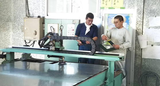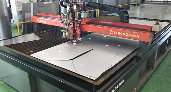 施工・製作図面からダクトの寸法を算出し、専用ソフトに入力後、プラズマ切断機を操作して素材から各パーツを切り出します。その後、板金加工機にかけ、ダクト部材を組み立てます。また、寸法が合わないなどで現場作業員からダクト部材の修正・追加製作の依頼があるときには修正・追加制作が入ります。